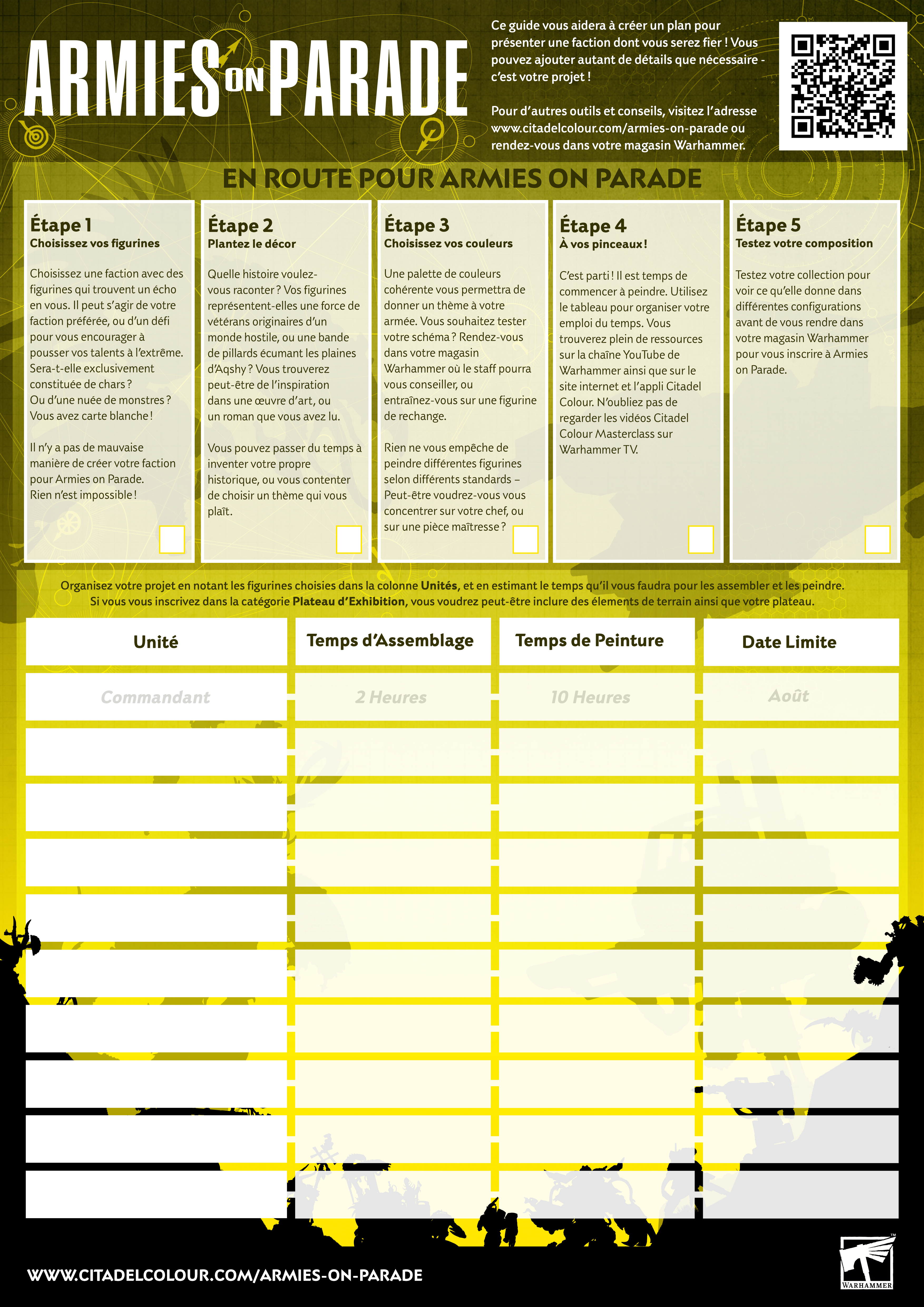 Vous pouvez également participer à Armies on Parade en ligne et partager vos progrès avec nous sur les réseaux sociaux avec les hashtags #ArmiesonParade2024 et #PaintingWarhammer. De plus, il y a également des prix à gagner en ligne, dont: